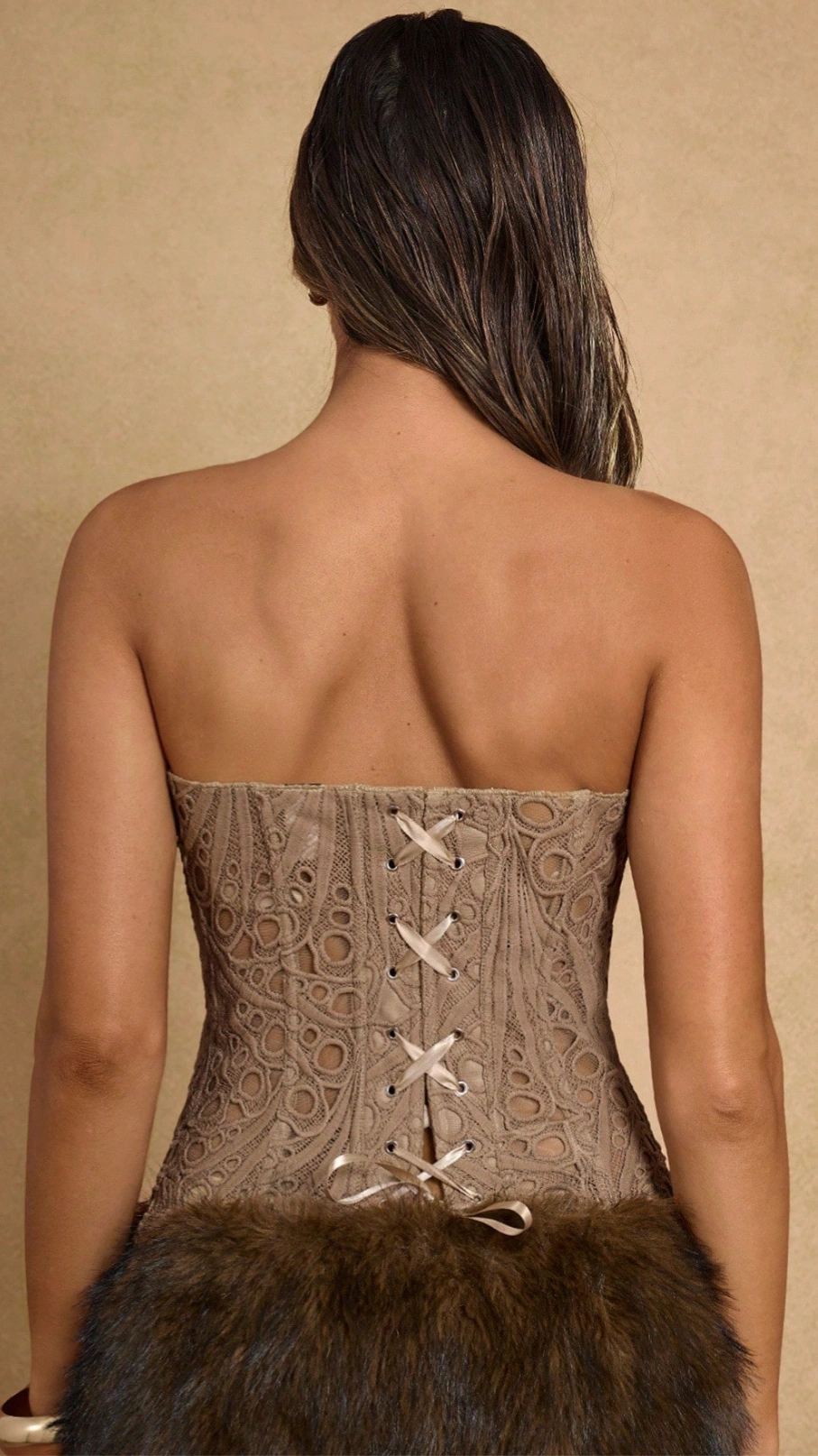 Autumn And Winter Textured Sheer Floral Lace Corset