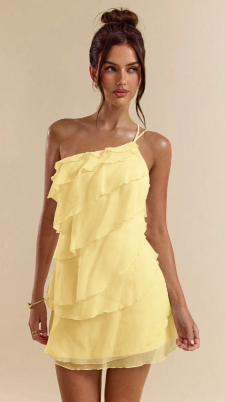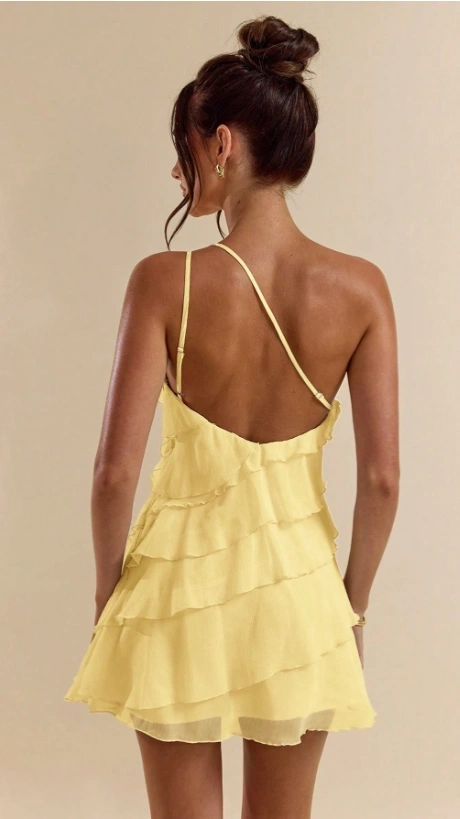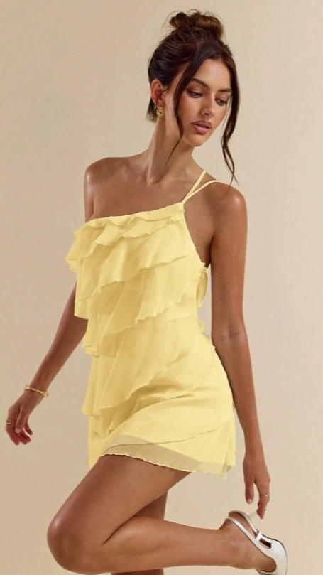 Apricot Layered Lotus Leaf Cake Mini Dress