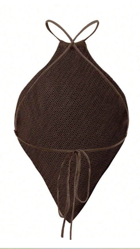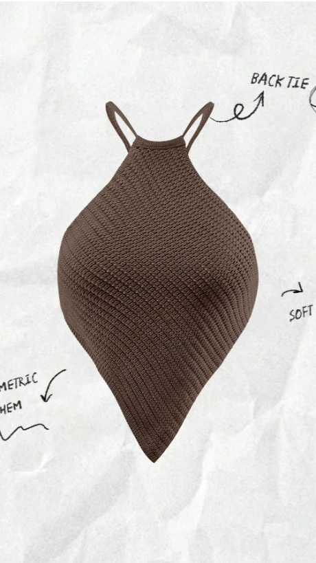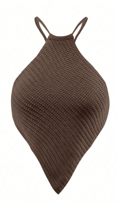 Asymmetric Hem Halter Neck Knitted Top
