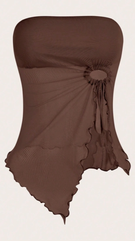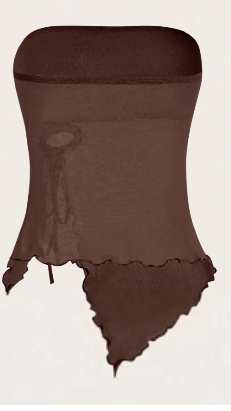 Asymmetrical Hem Coffee Mesh Tube Top
