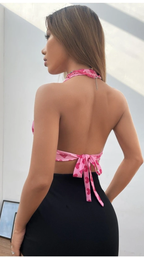 Backless Knot Crop Halter Pink Top