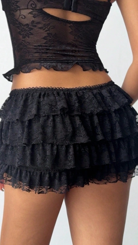 Black Lace Ruffle Shorts