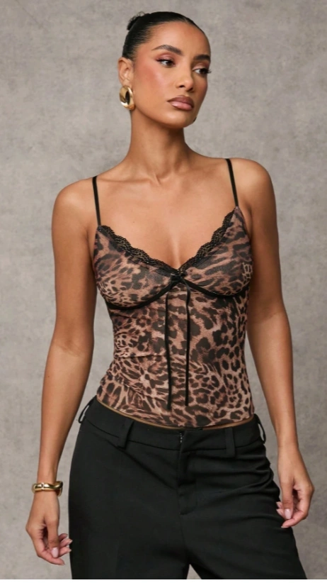 Bow Sexy See-Through Leopard Print Top