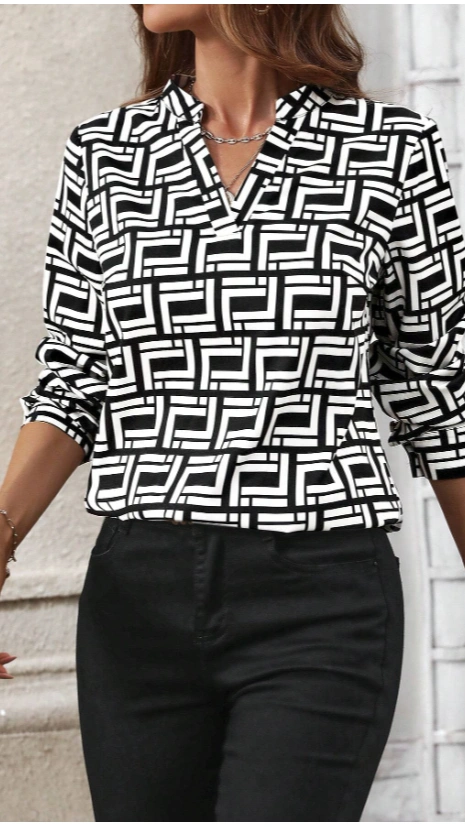 Casual All-Over Print Button-Down Shirt For Spring And Autumn