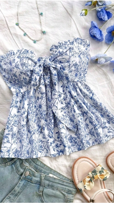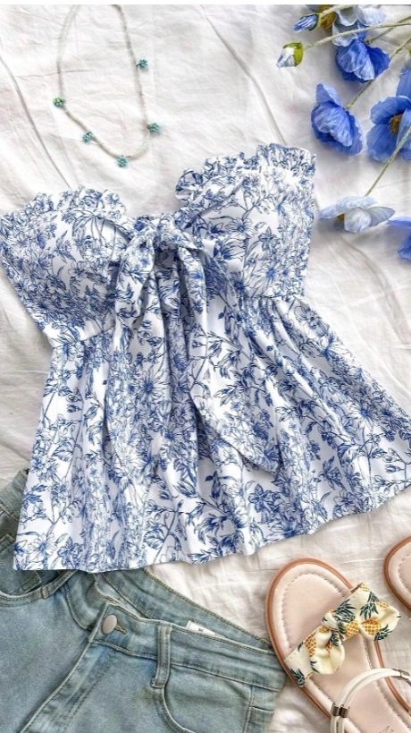 Casual Tie-Waist A-Line Ruffle Hem Bandeau Top