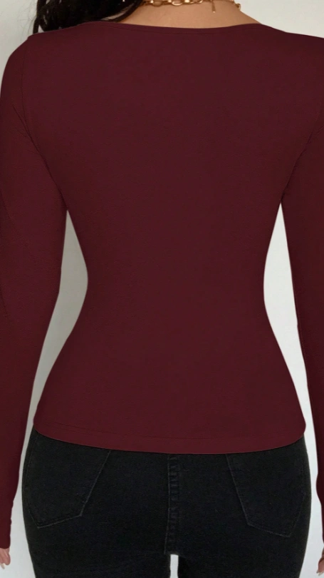 Crew Neck Tie Decor Long Sleeve Bodycon T-Shirt