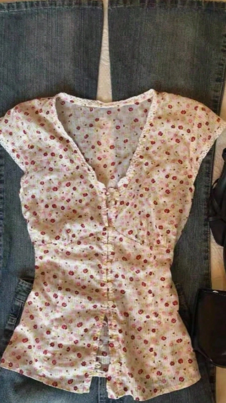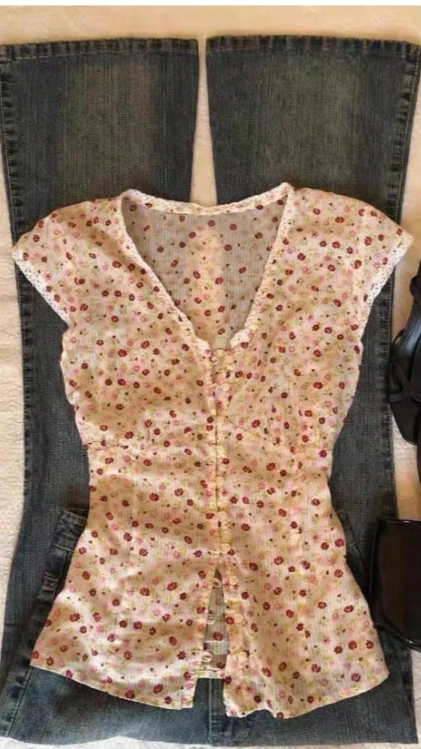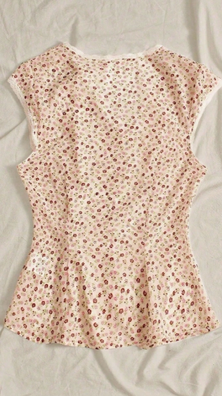 Ditsy Floral V-Neck Short Sleeve Casual T-Shirt