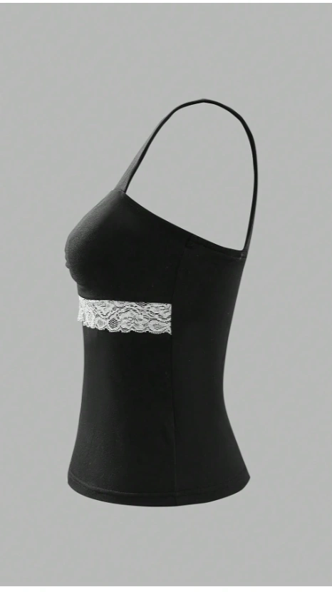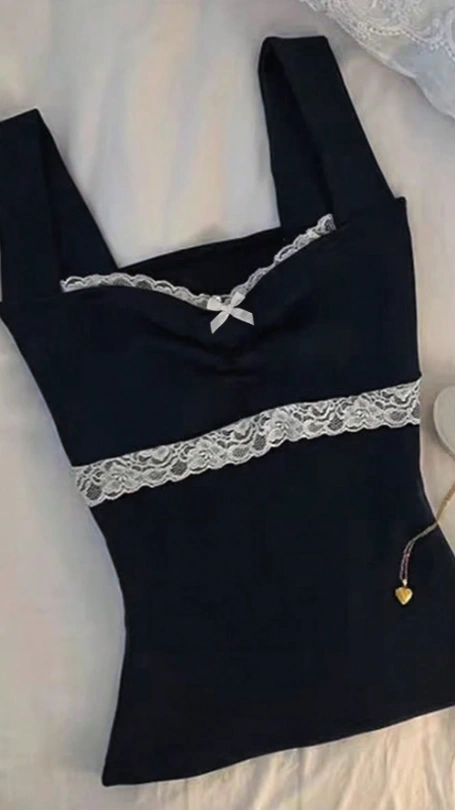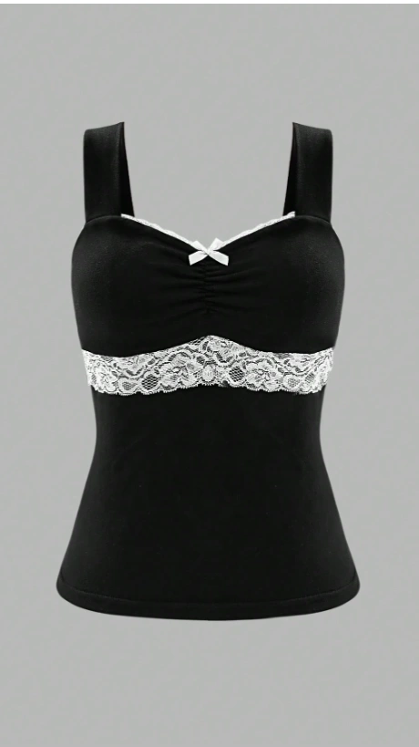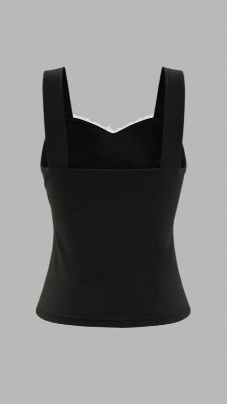 Elegant Contrast Color Lace Trim Sleeveless Top