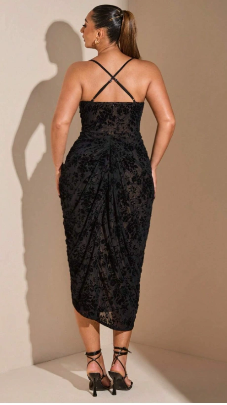 Elegant Flocking Graceful Midi Pleated Dress