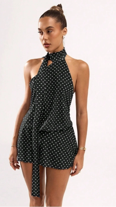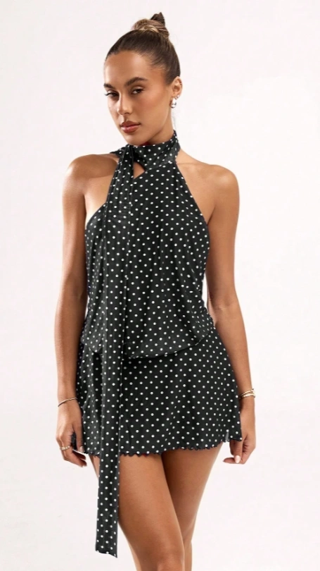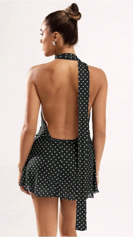 Elegant Polka Dot Print Backless Mini Cami Dress