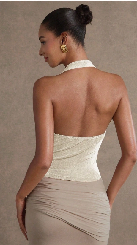 Elegant Sexy Solid Color Flared Neck Halter Top