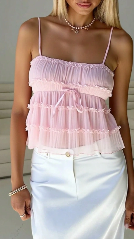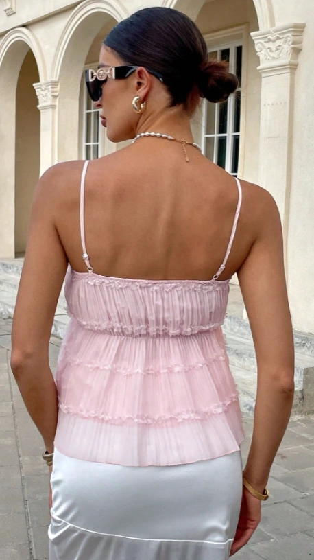 Elegant Solid Color Camisole Thanks Giving Pink Casual Top