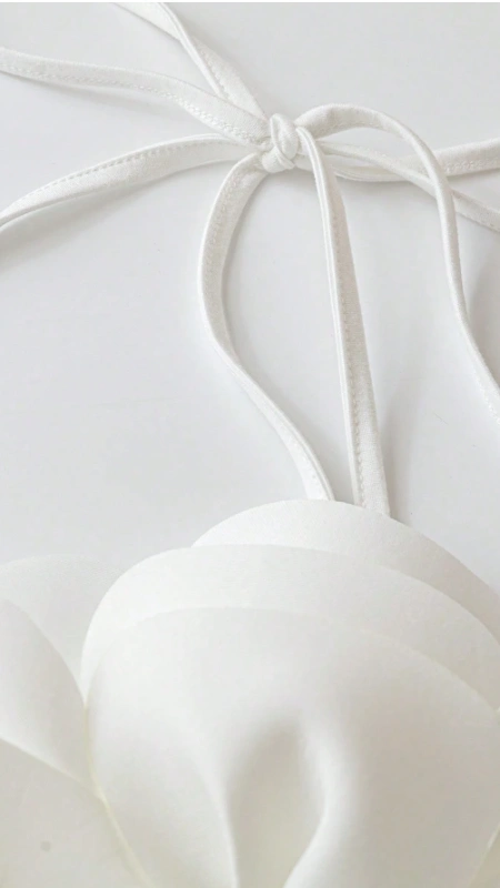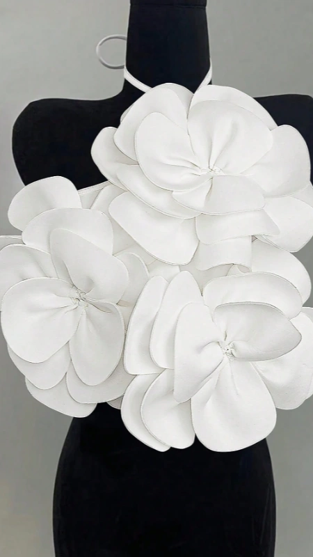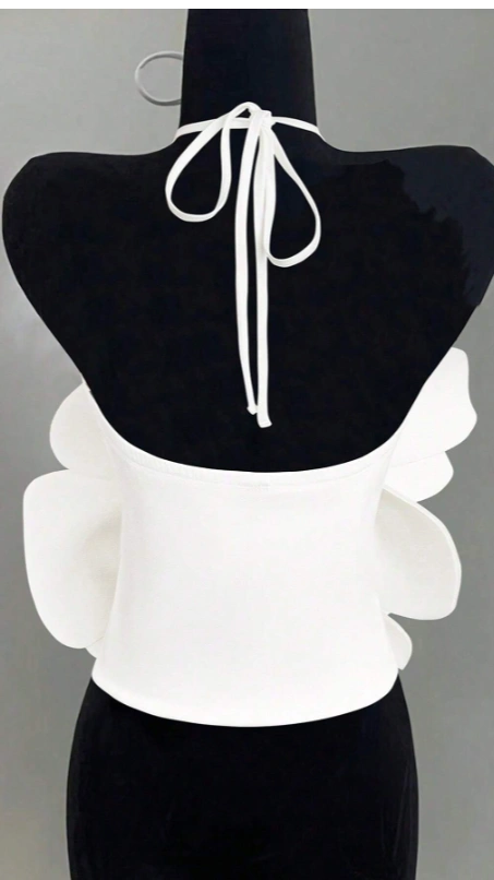 Criss-Cross Halter Solid White Floral Detail Ribbed Bodycon Sleeveless Top