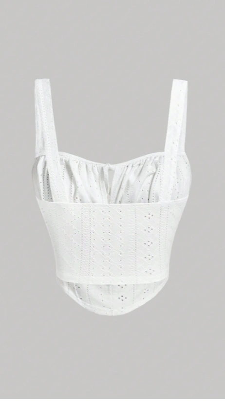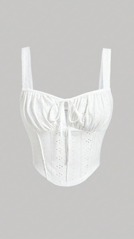 Embroidery Lace-Up Ruched Bust White Cami Top