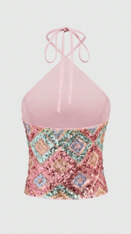 Fashion Elegant Romantic Beaded Halter Neck Tank Top