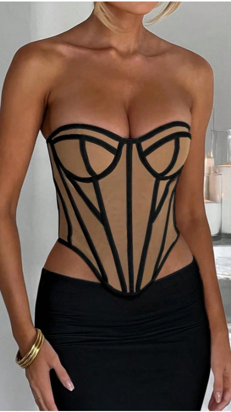 Fashionable Sexy Contrast Trim Bandeau Crop Top