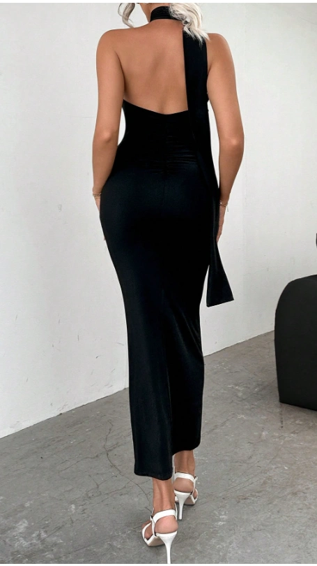 Firerie Solid Halter Neck Backless Bodycon Dress