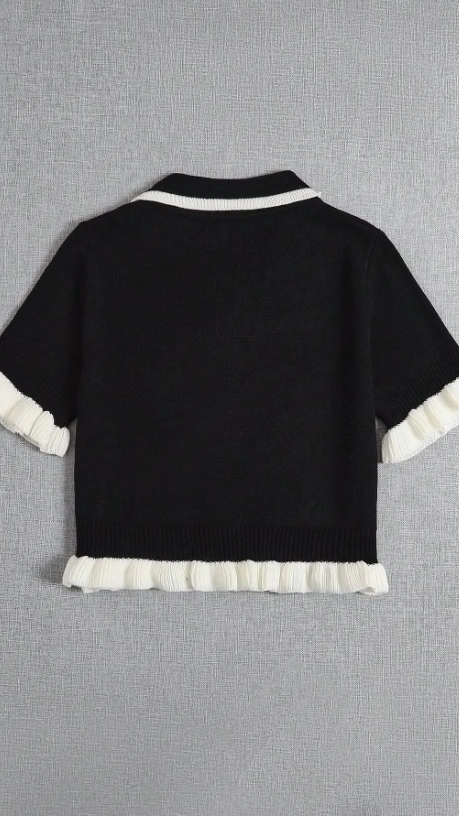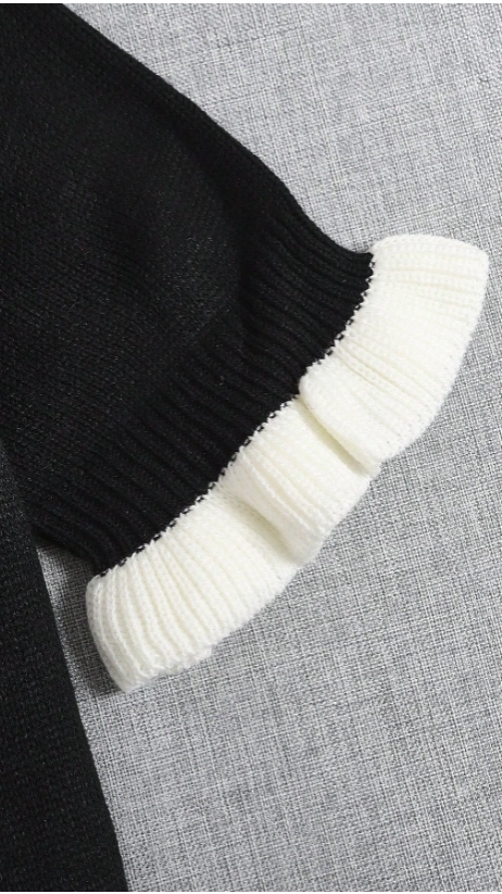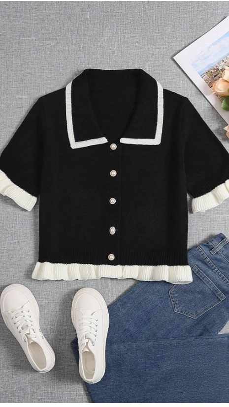 Flirla Plus Contrast Trim Frill Trim Cardigan Winter Fall Autumn
