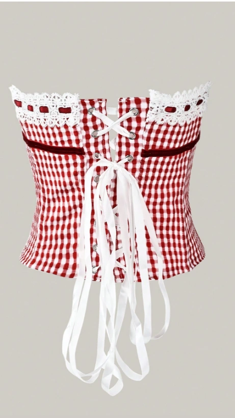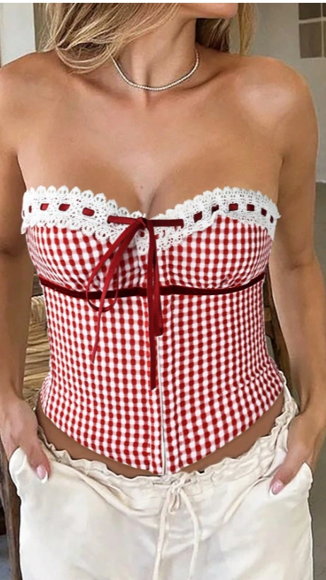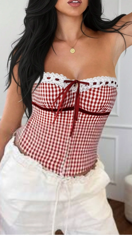 Floral Lace Trim Contrast Satin Bow Bustier Crop Top