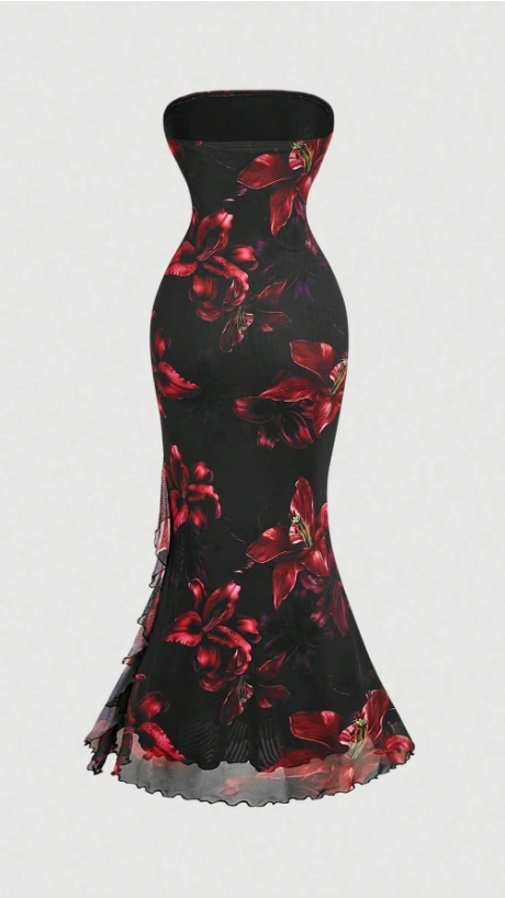 Floral Print Women Long Dress