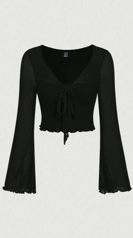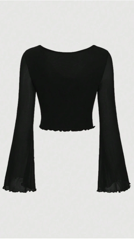 Front Lettuce Trim Trumpet Sleeve Crop Tee