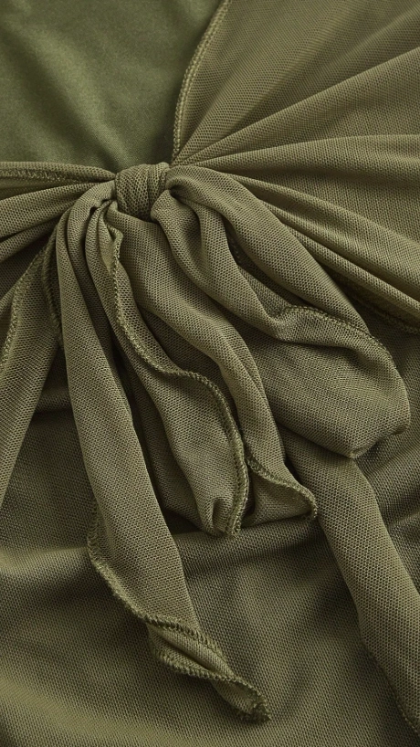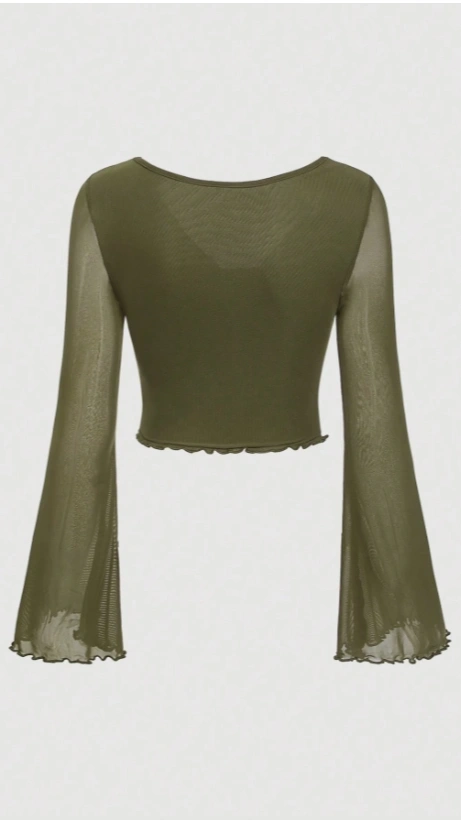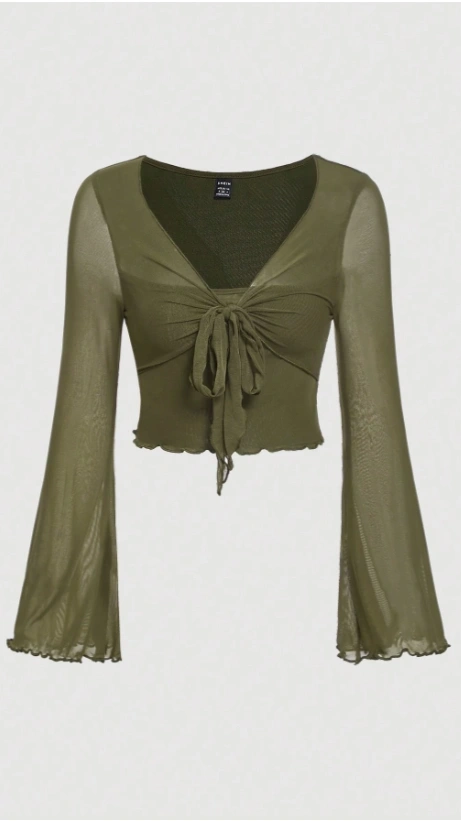Green Tie Front Lettuce Trim Mesh Tee