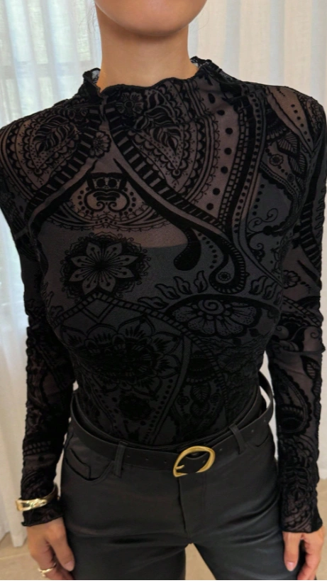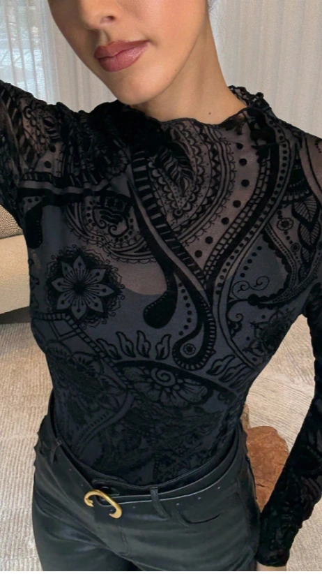 Lavishia 1pc Women Elegant Paisley Flocked Print Blouse