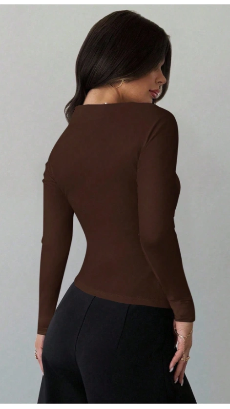 Long Sleeve Wrap Metallic Decor Ruched Slim Fit White T-Shir