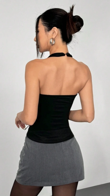 Metal Buckle Design Backless Knitted Top