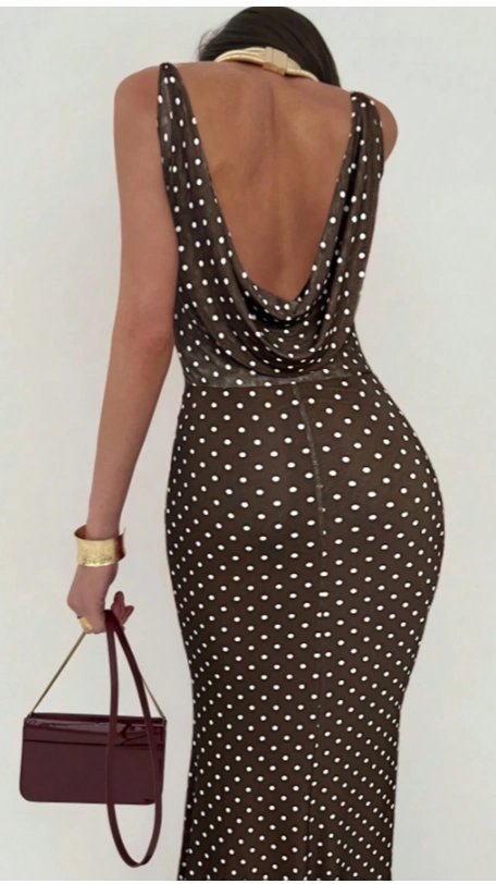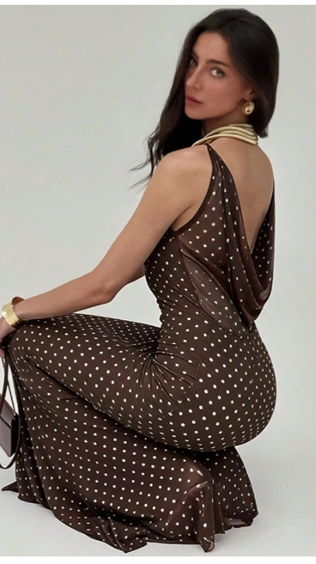 Neck Backless Poka Dot Printed Sleeveless Maxi Dress