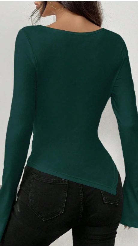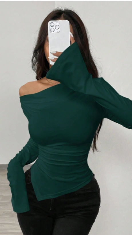 Off Shoulder Asymmetric Hem Knit T-Shirt