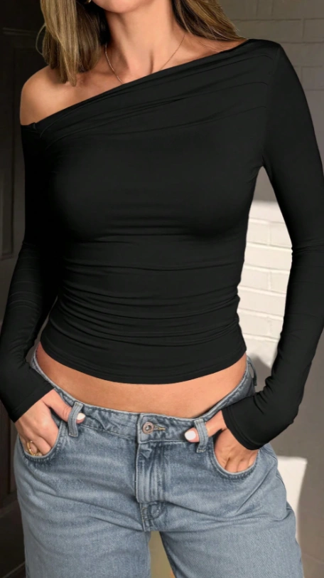 Off-Shoulder Long Sleeve T-Shirt