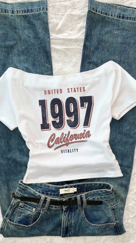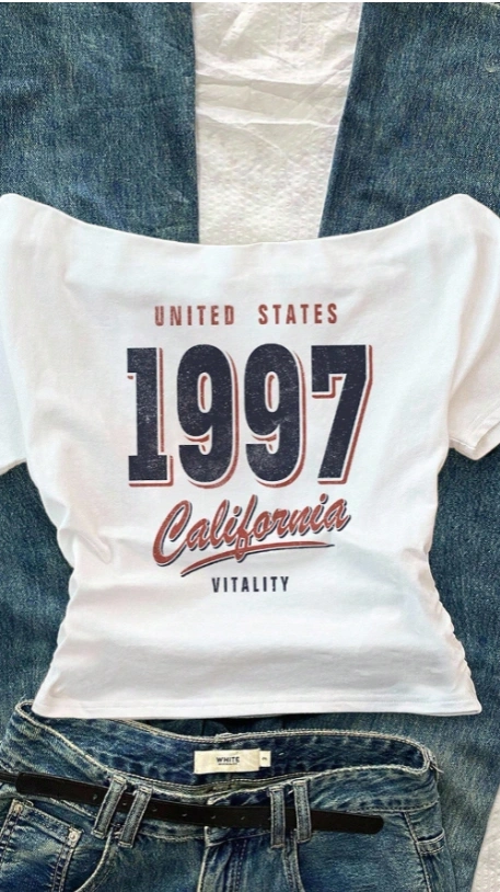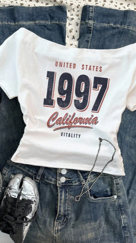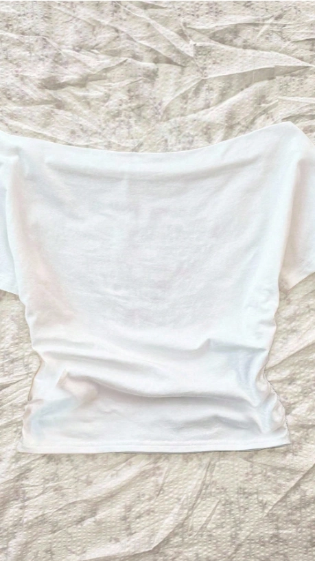 Off Shoulder Tight Short Sleeve White T-Shirt