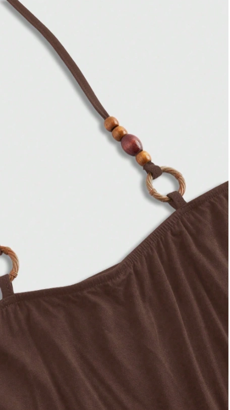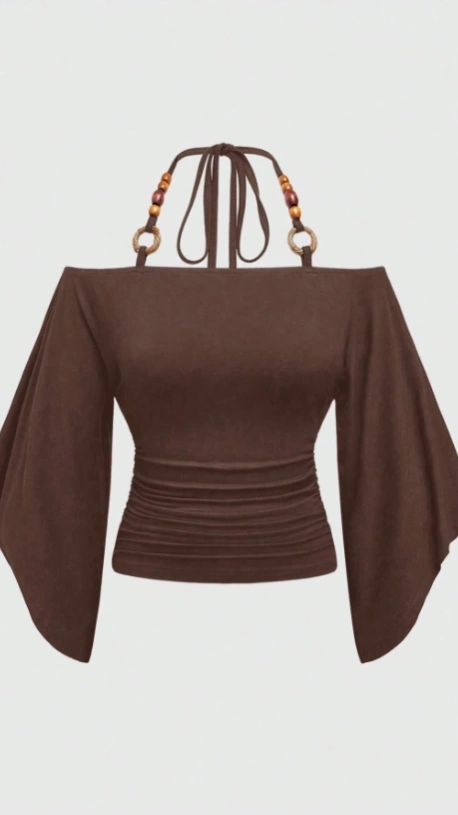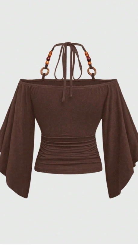 Off-Shoulder Wooden Bead Decor Bat-Wing Sleeve Women T-Shirt