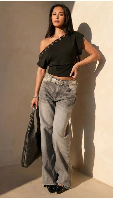 One-Shoulder T-Shirt – Asymmetrical Neck Short Sleeve Crop Top