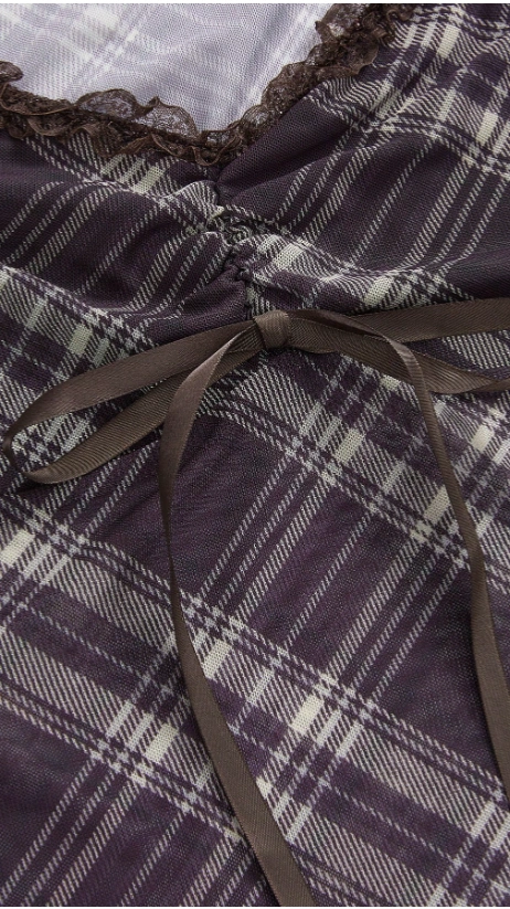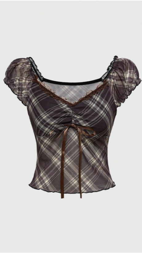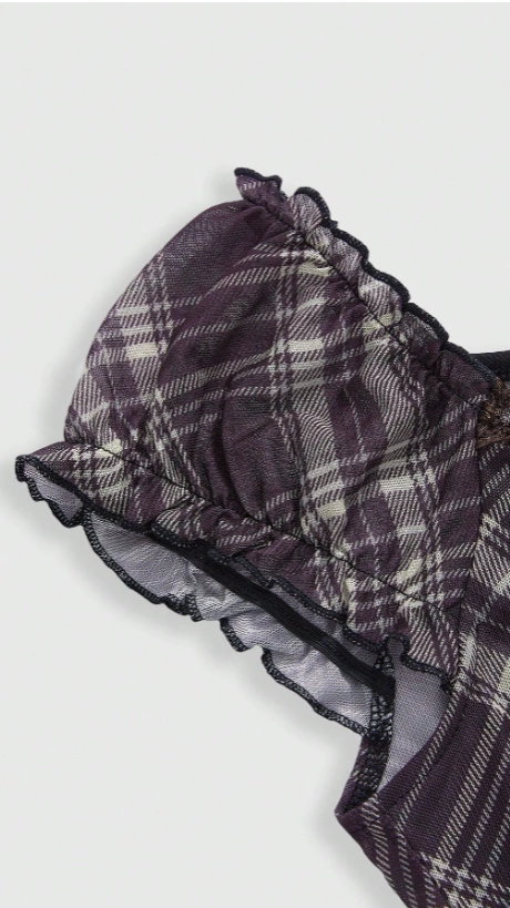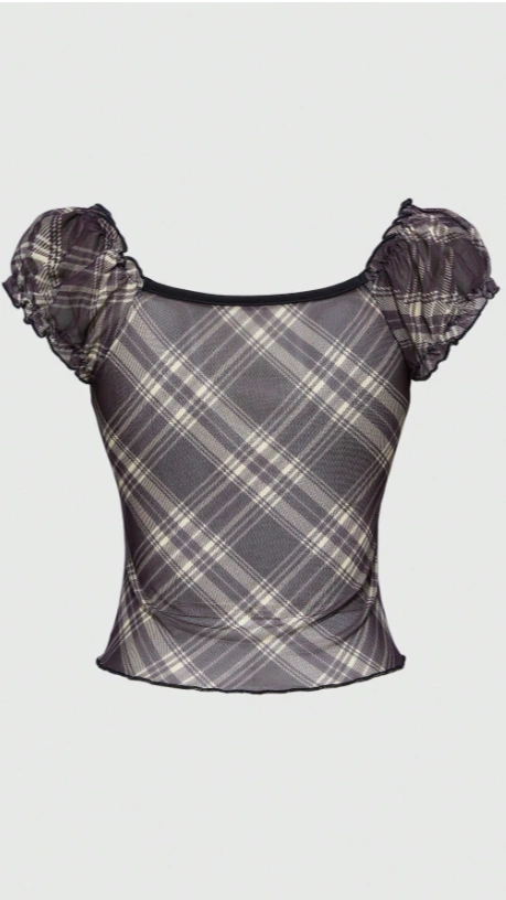 Plaid Sweetheart Neckline Raglan Sleeve Short T-Shirt