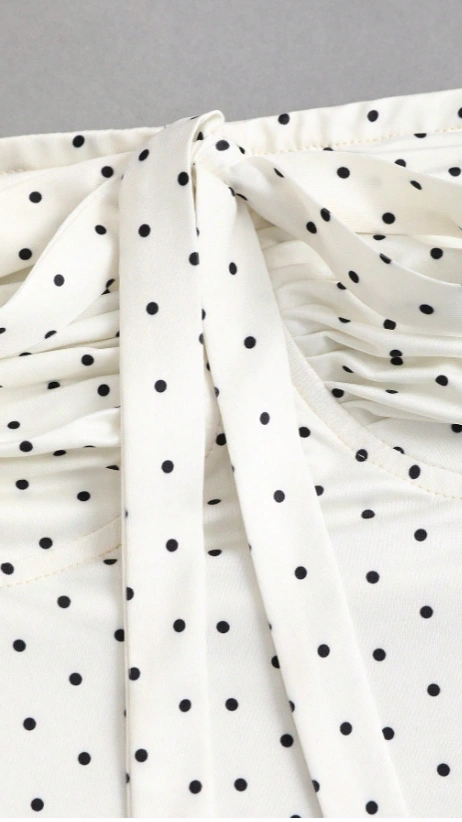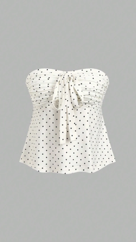Polka Dot Bow Knot Pleated Bandeau Top