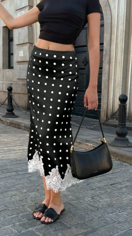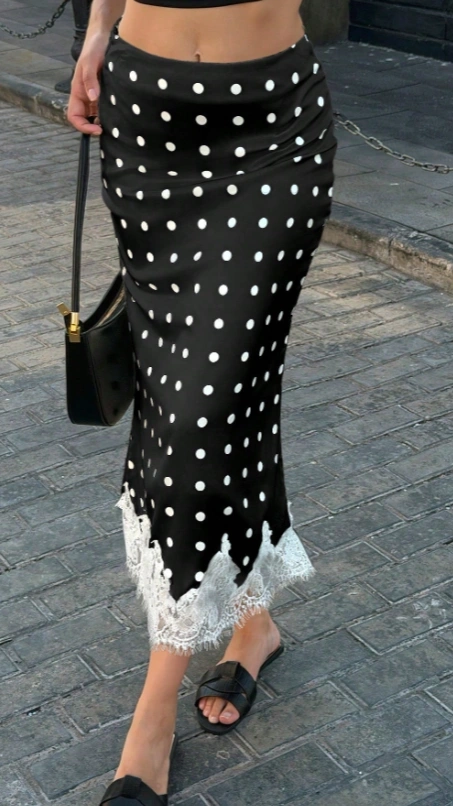 Polka Dot Contrast Lace Contrast Color Elegant Fashion Versatile Women Skirt