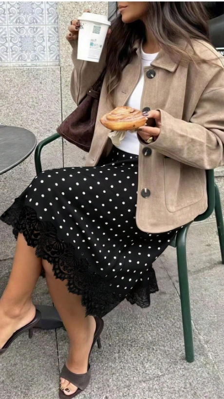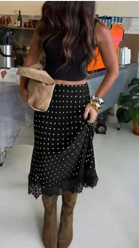 Polka Dot Elegant Party Woven Fabric Hollow Lace Trim Skirt