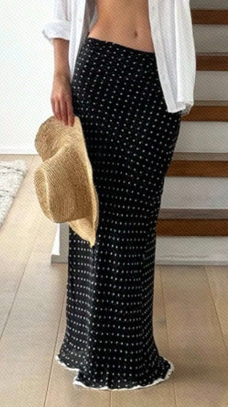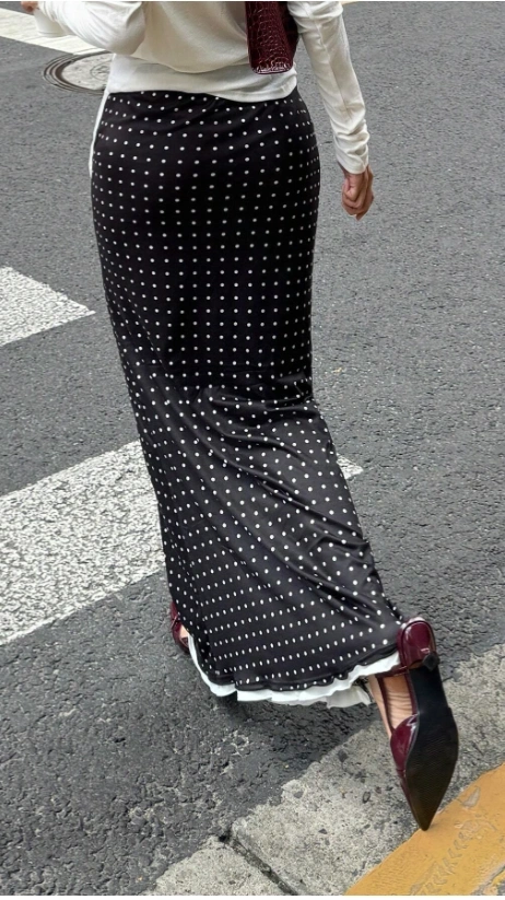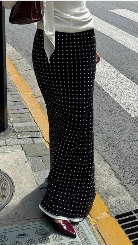 Polka Dot Print A-Line Black Skirt