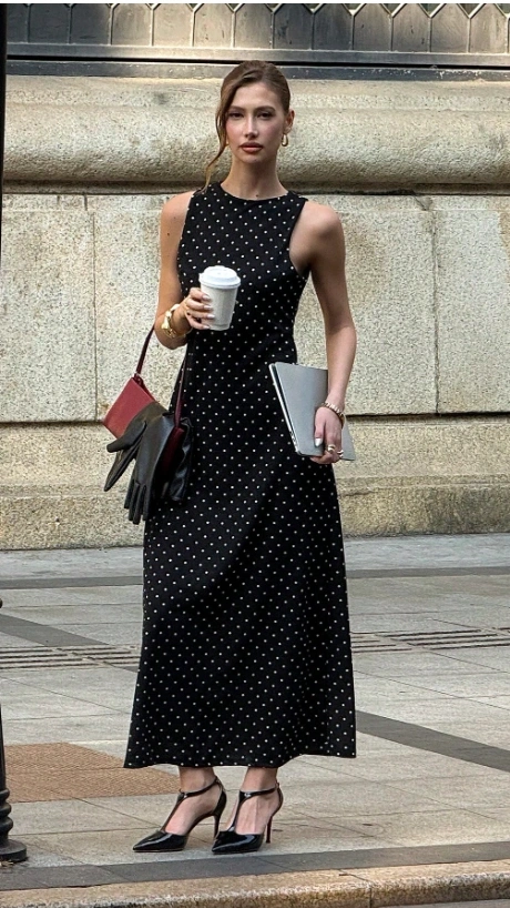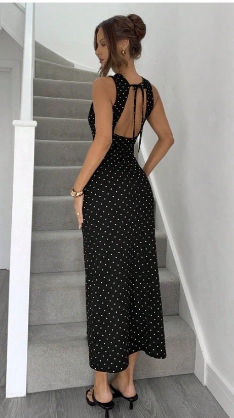 Polka Dot Print Backless Lace Up Sleeveless Dress