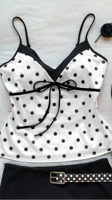 Polka Dot Print V-Neck Camisole Vest
