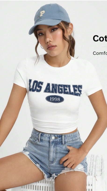 SHEIN EZwear Letter Graphic Crop Tee