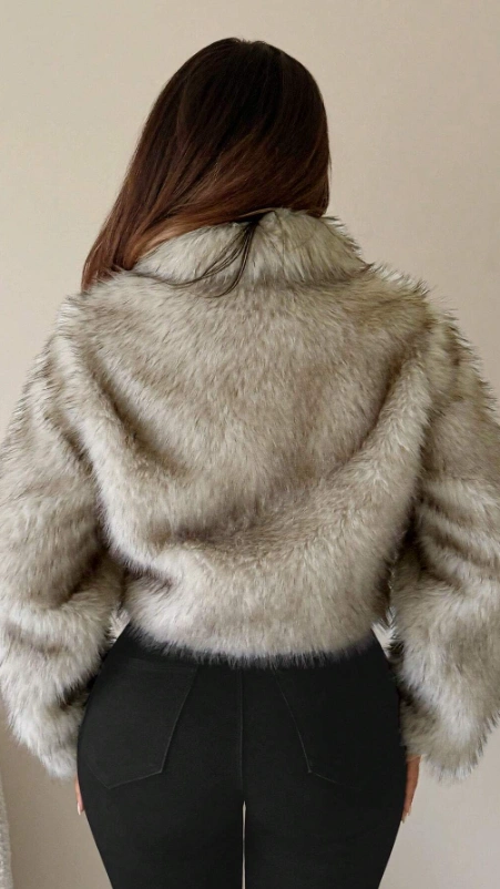 SHEIN ICON Brown Tie Dye Metal Decor Casual Fluffy Coat