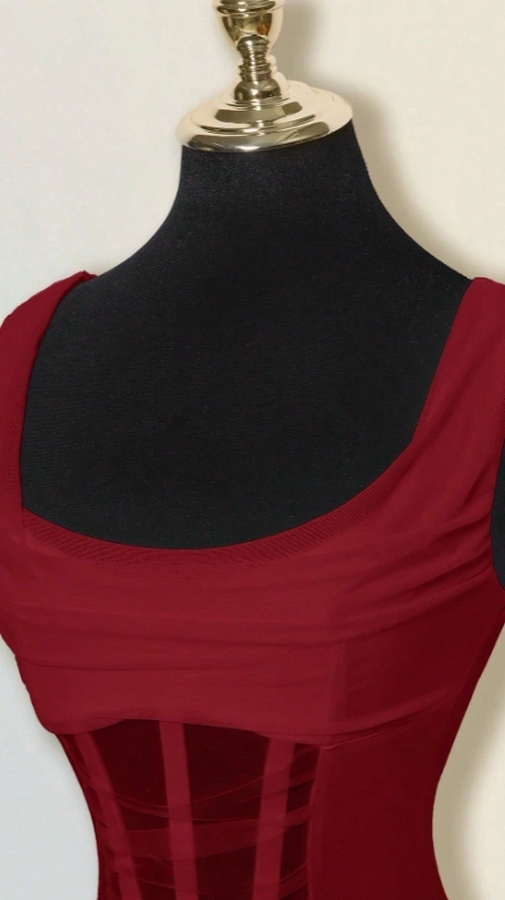 SHEIN ICON Sheer Plunging Neckline Fishbone Camisole