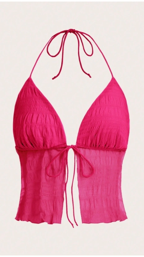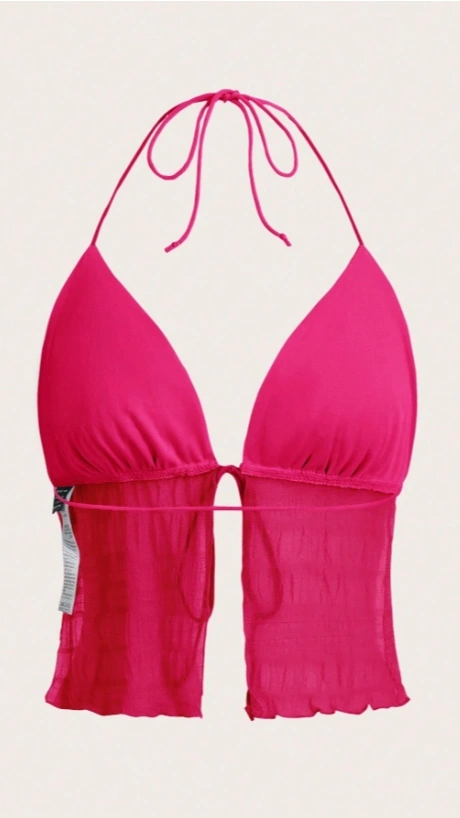 SHEIN ICON Split Hem Tie Backless Mesh Halter Top