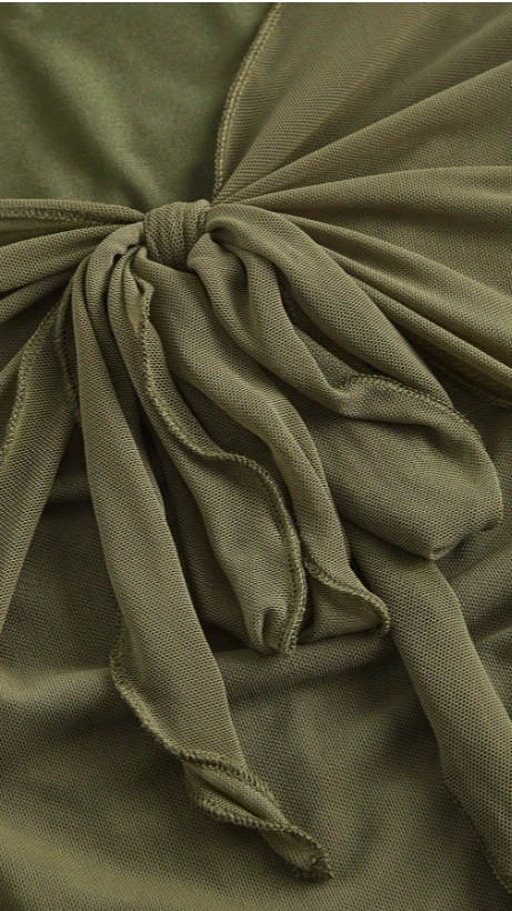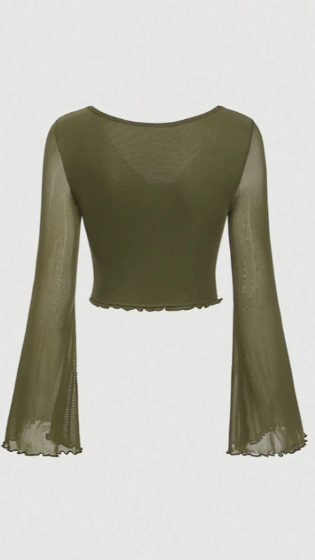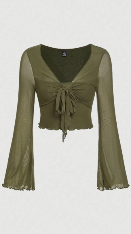 SHEIN MOD 2 In 1 Green Tie Front Lettuce Trim Mesh Tee