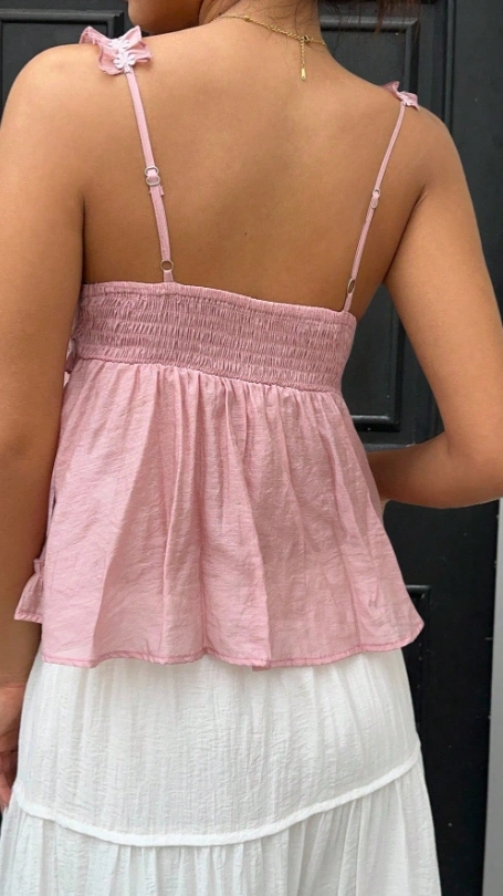 SHEIN Unity Embroidered Fabric Ruffle Bow Camisole Top