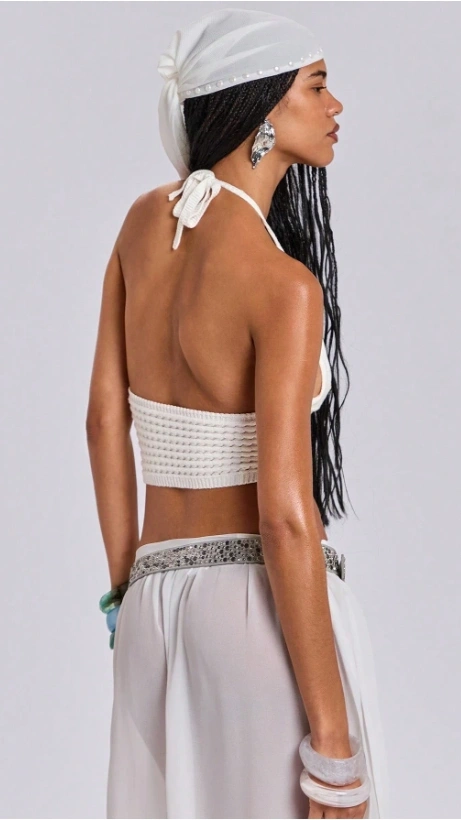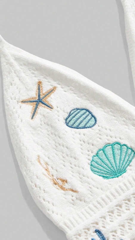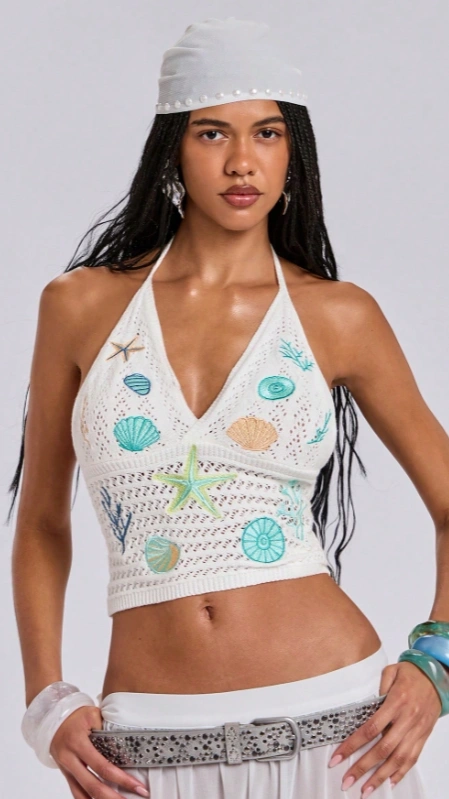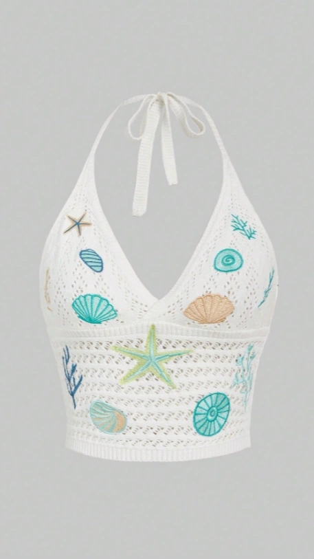 Shell Embroidered Knit Halter Top