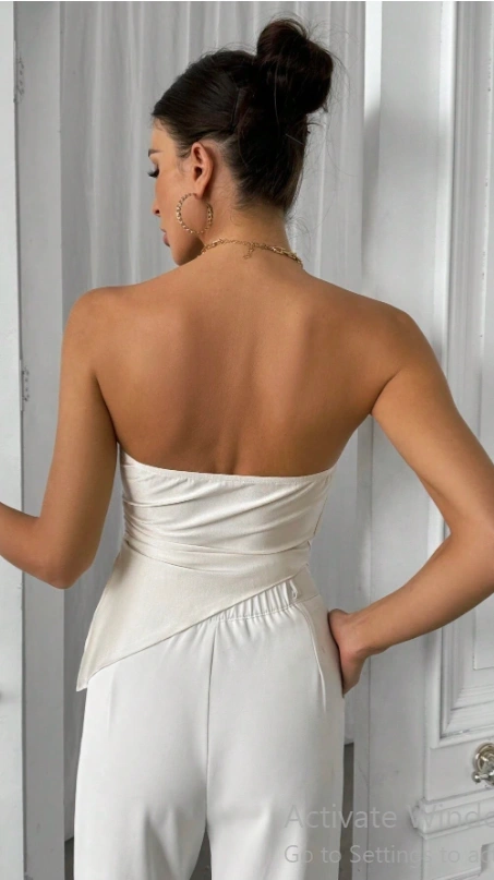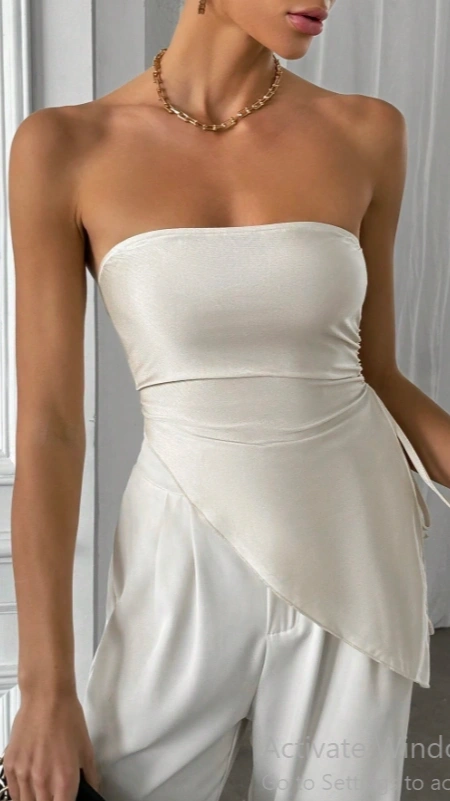 Side Drawstring Asymmetric Hem Bandeau Top